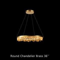 Cervine Round Brass & Clear Geode Quartz Crystal Chandelier 36"