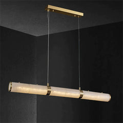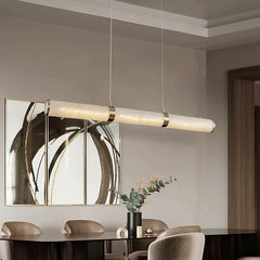 Alan Linear Alabaster Modern Chandelier, Chandelier For Dining Room