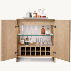 -The cabinet's base is equipped with a bottle rack that can accommodate up to 12 bottles.