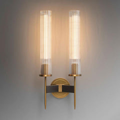 Introducing the Alou Double Sconce – a modern luminary meticulously machined from solid brass. Every component is hand-polished and uniquely patina'd for a distinct touch. Its borosilicate glass shades undergo careful hand re-polishing, adding a refined elegance to any space.