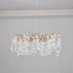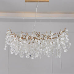 Immerse your space in natural elegance with our handcrafted branch chandelier. Each brass branch is meticulously twisted and shaped by hand, creating a distinct organic look complemented by charming coin-shaped glass accents. This exquisite piece is particularly well-suited for dining and kitchen areas.