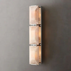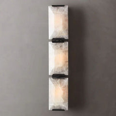 The collection showcases natural beauty with a minimalist sensibility.Translucent alabaster is cut in sheer and faceted slabs, each held in place by a slender mount in our dramatic collection. Warm light shines through the stone, accentuating the play of crystal formations within.