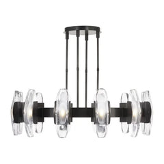 The aute lighting Collection combines industrial elements with the raw expression of glass, using a brass-plated aluminium frame to support the circular cast glass panels. As the light passes through the glass, bubbles and imperfections from the casting process come to the fore, presenting a natural aesthetic. This unique piece makes an artistic statement in the living room, foyer or dining area.