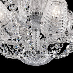 Measuring 39.37 inches in width and length. And standing at an impressive 57.1 inches in height. This chandelier demands attention and admiration. Weighing in at 198.42 lbs. It exudes substance and grandeur. The clear crystal. Coupled with a chromed metal finish. Elevates the aesthetic. Adding a contemporary edge to its timeless design.