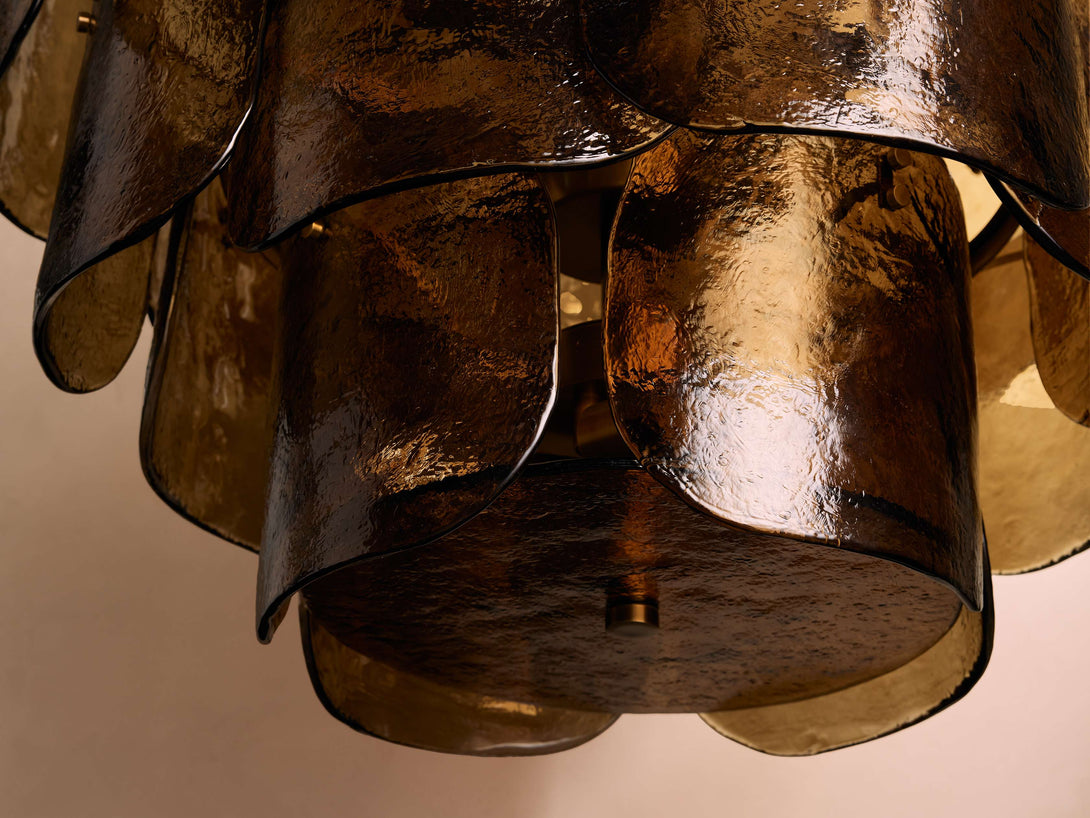 - Curved panels are crafted from molten glass that is molded and solidified resulting in custom-forged artistry and sculptural fluidity.