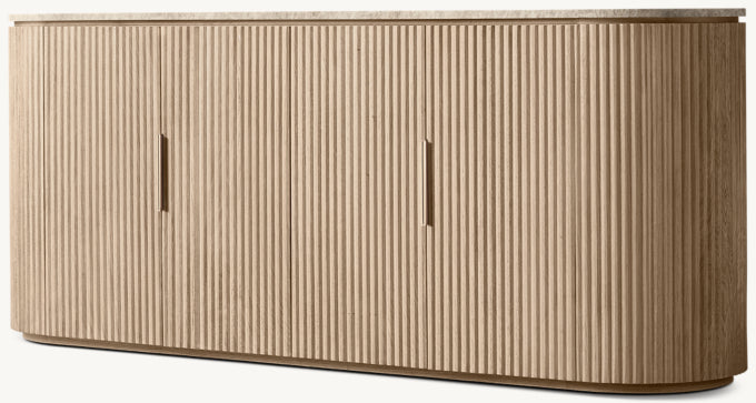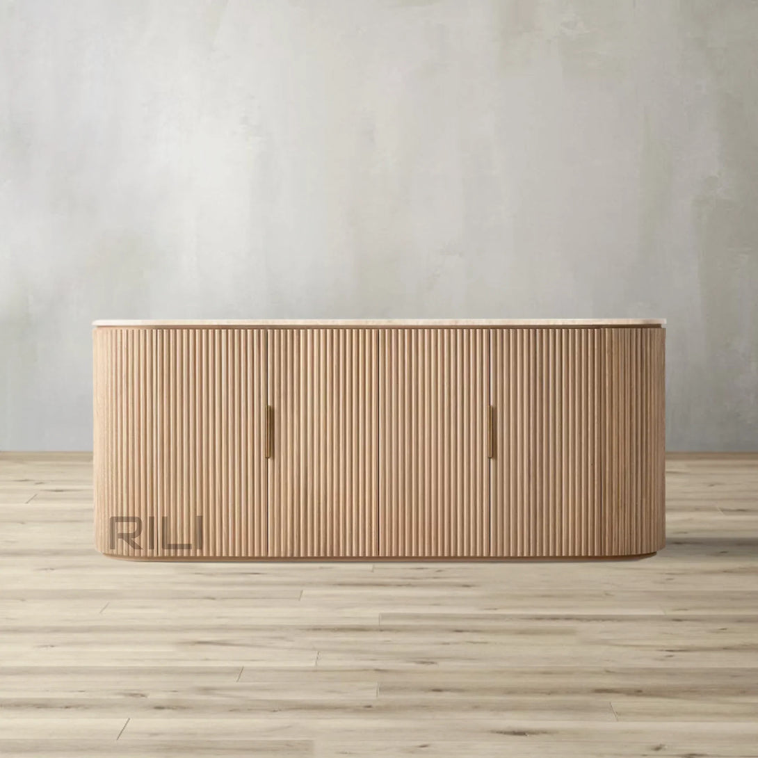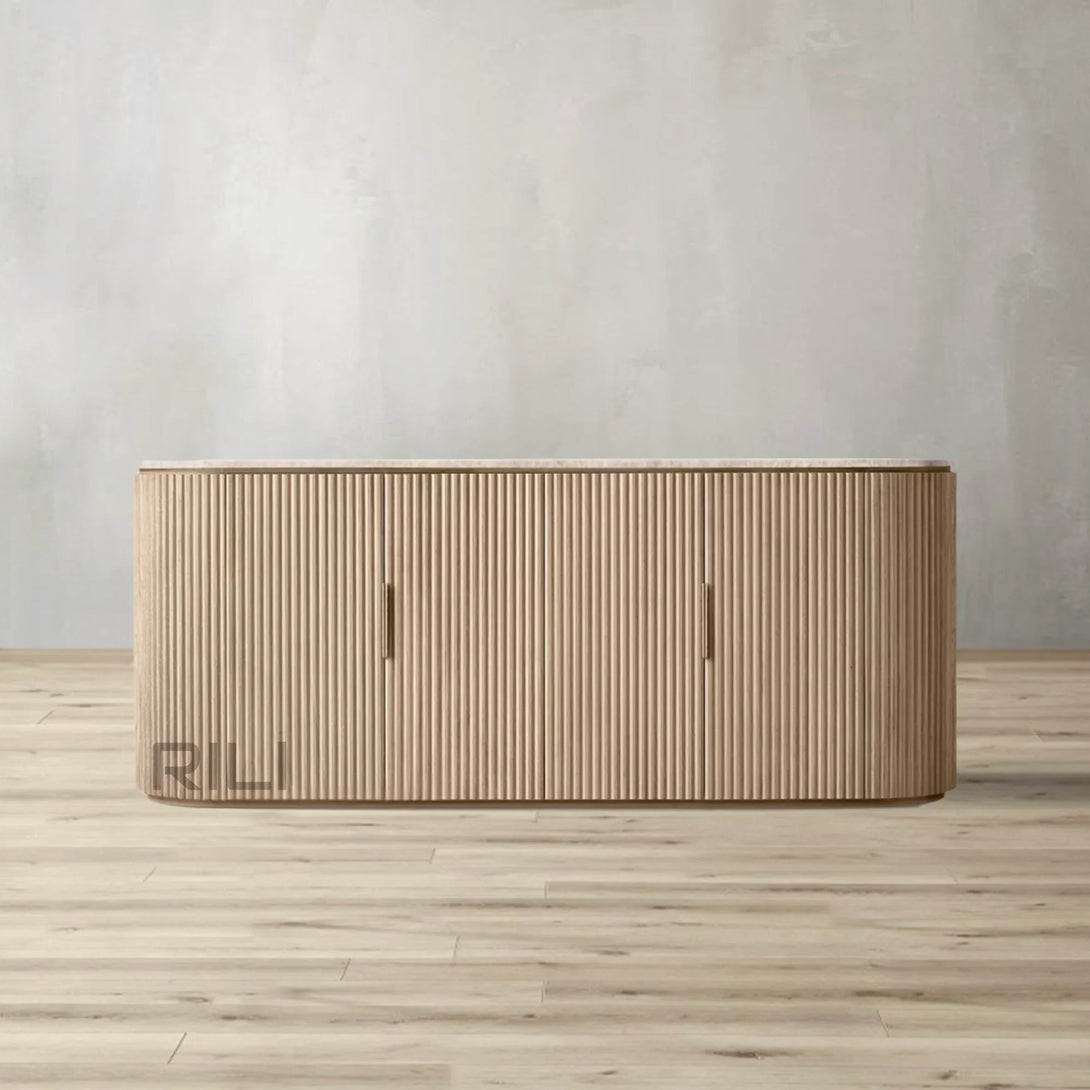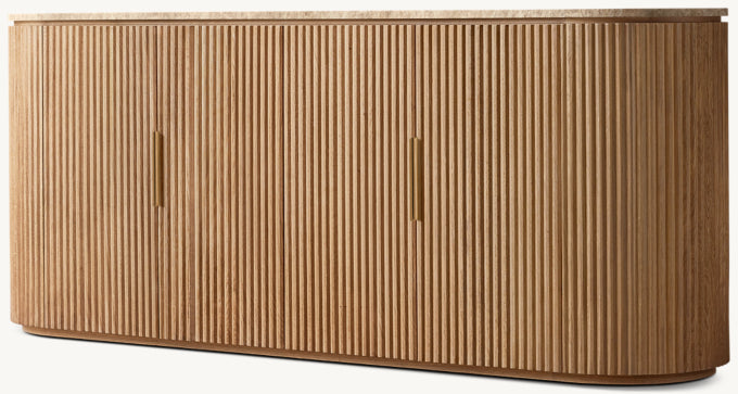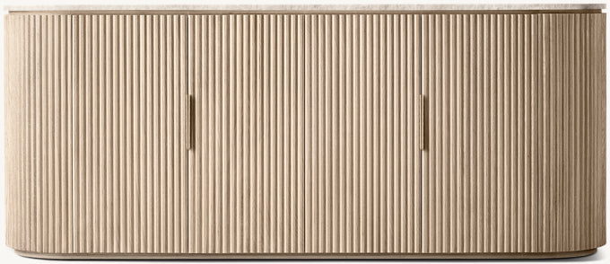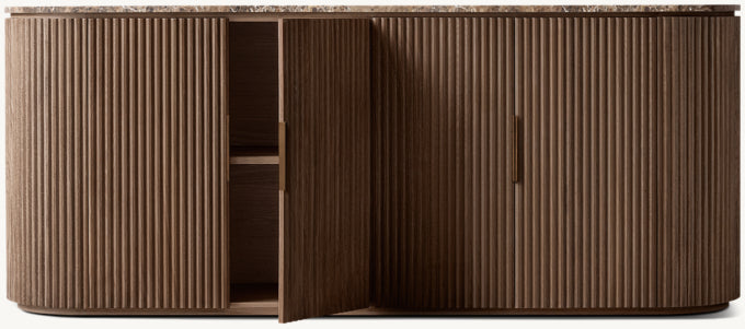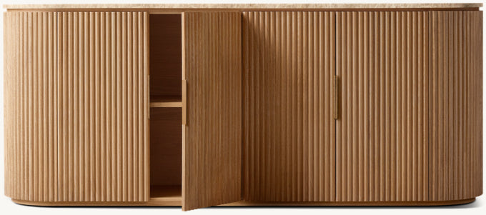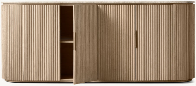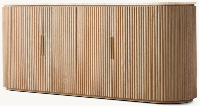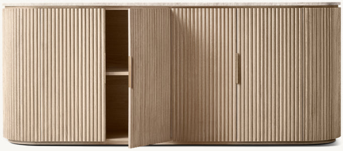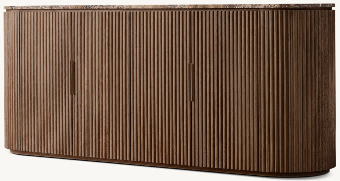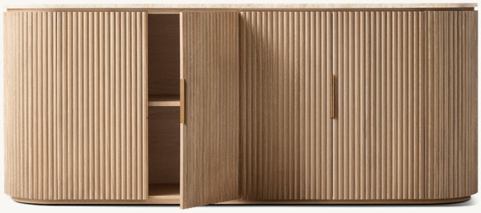 - Vertical oak reeding is finished in an intensive, multistep process that results in a smooth surface with visible grain