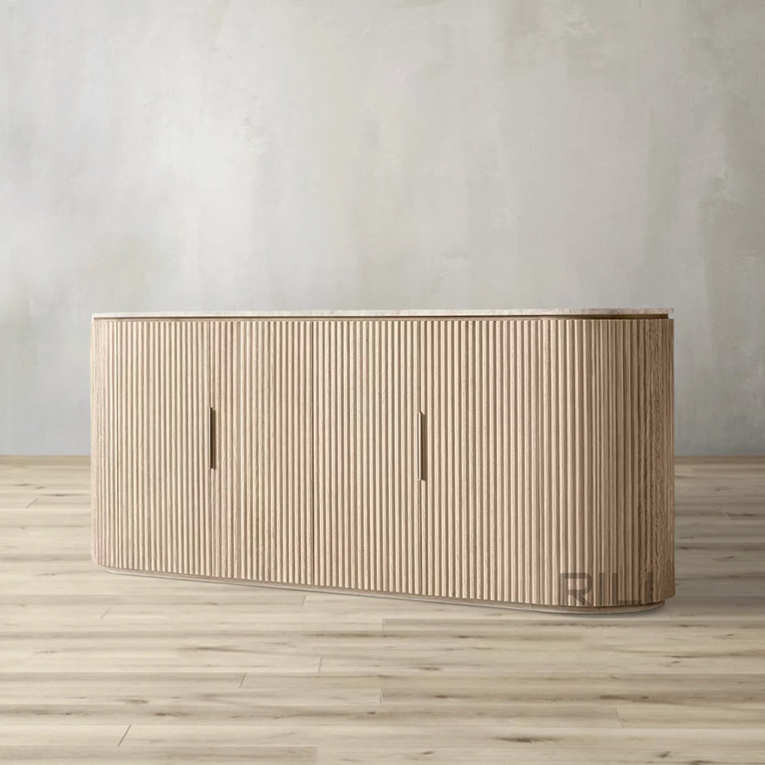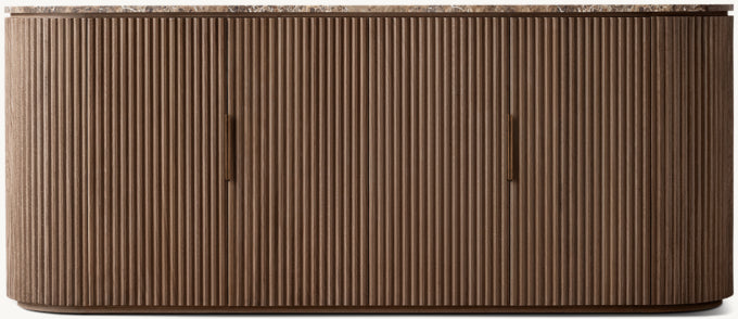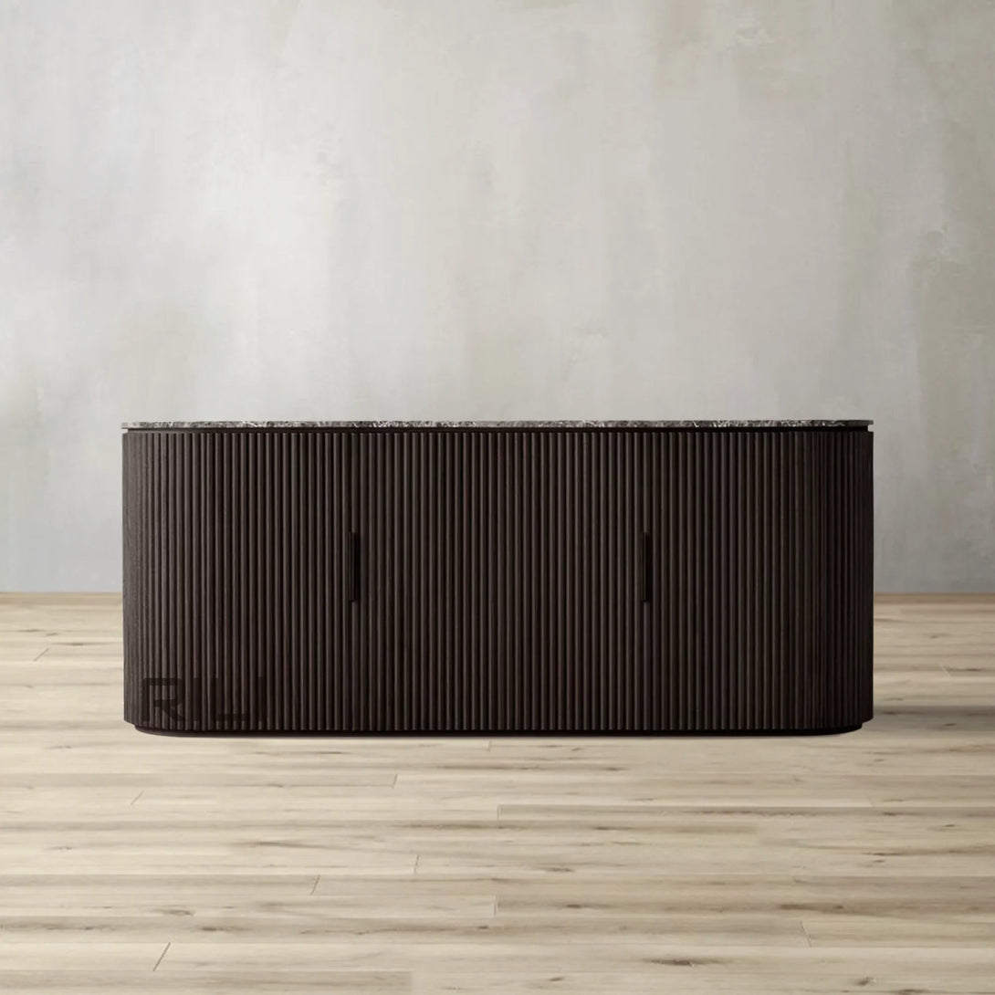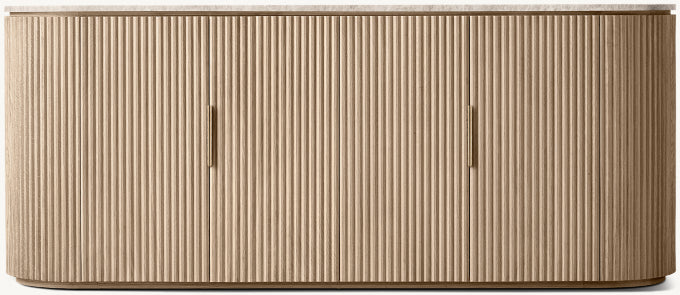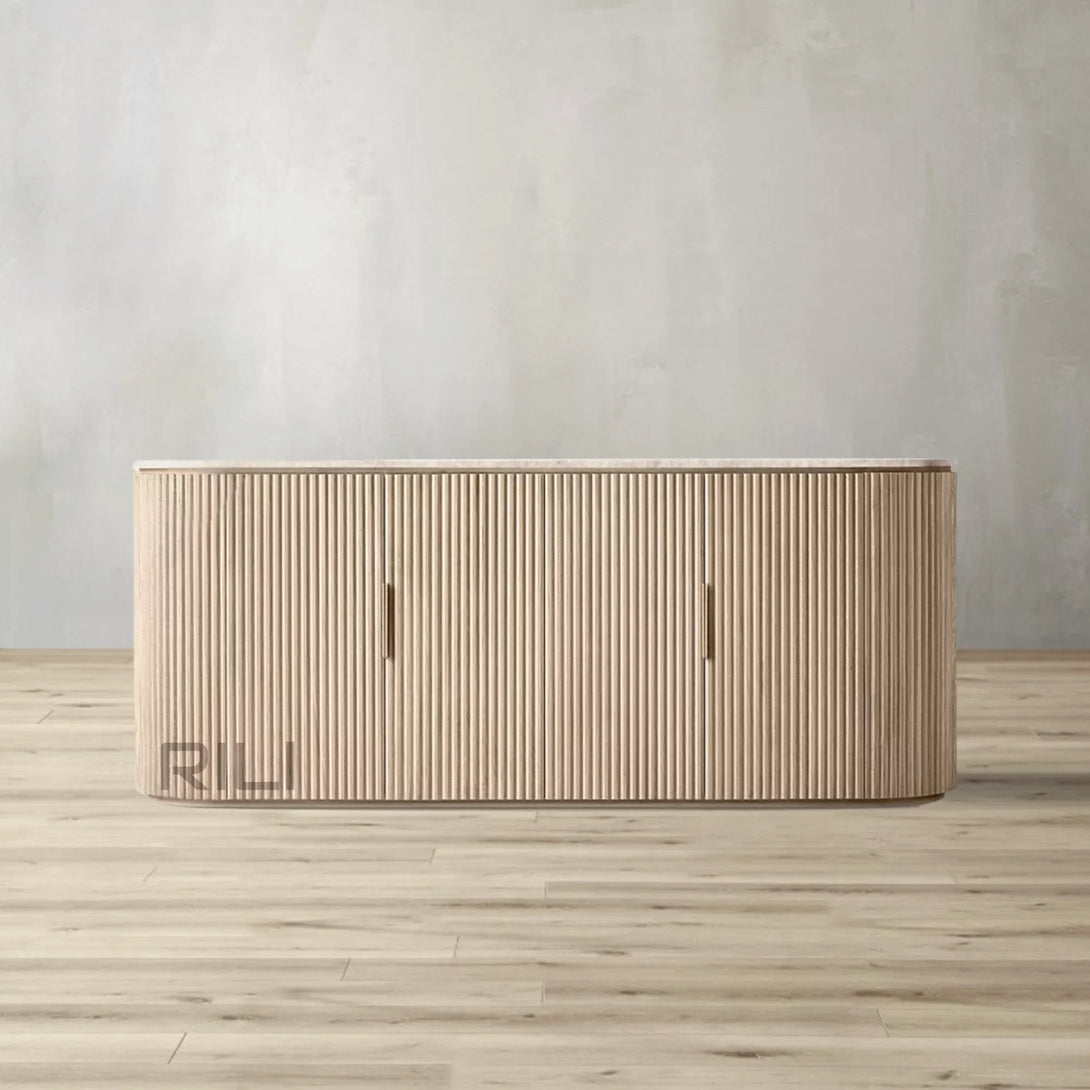 - Vertical oak reeding is finished in an intensive, multistep process that results in a smooth surface with visible grain