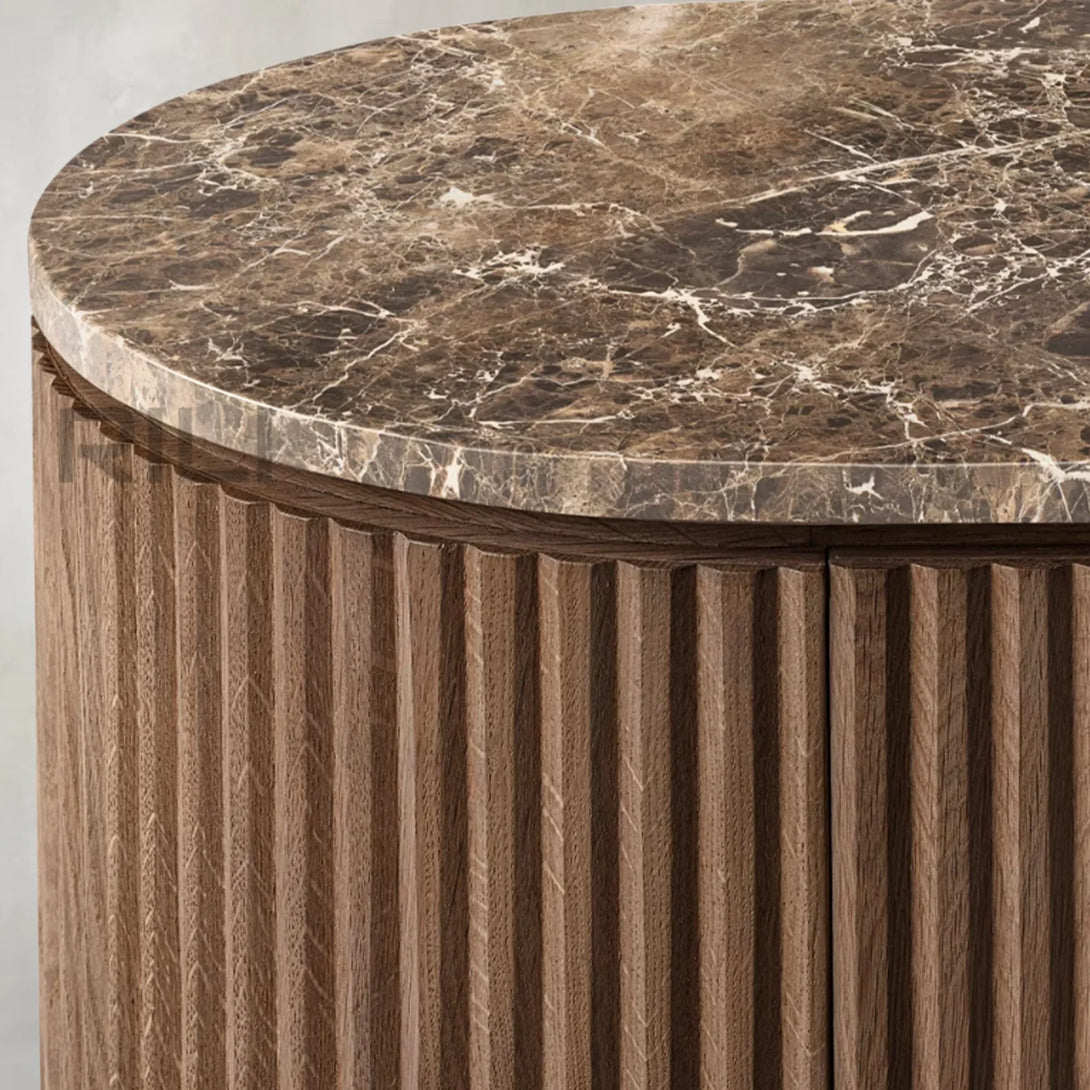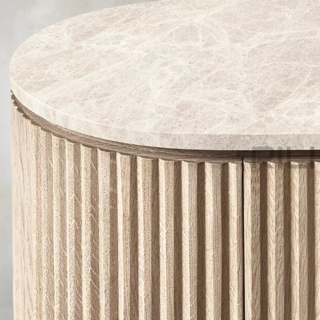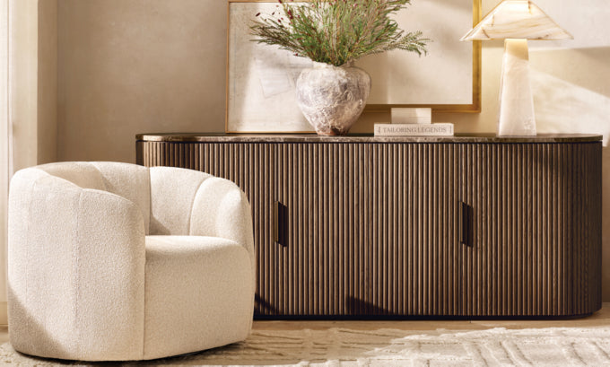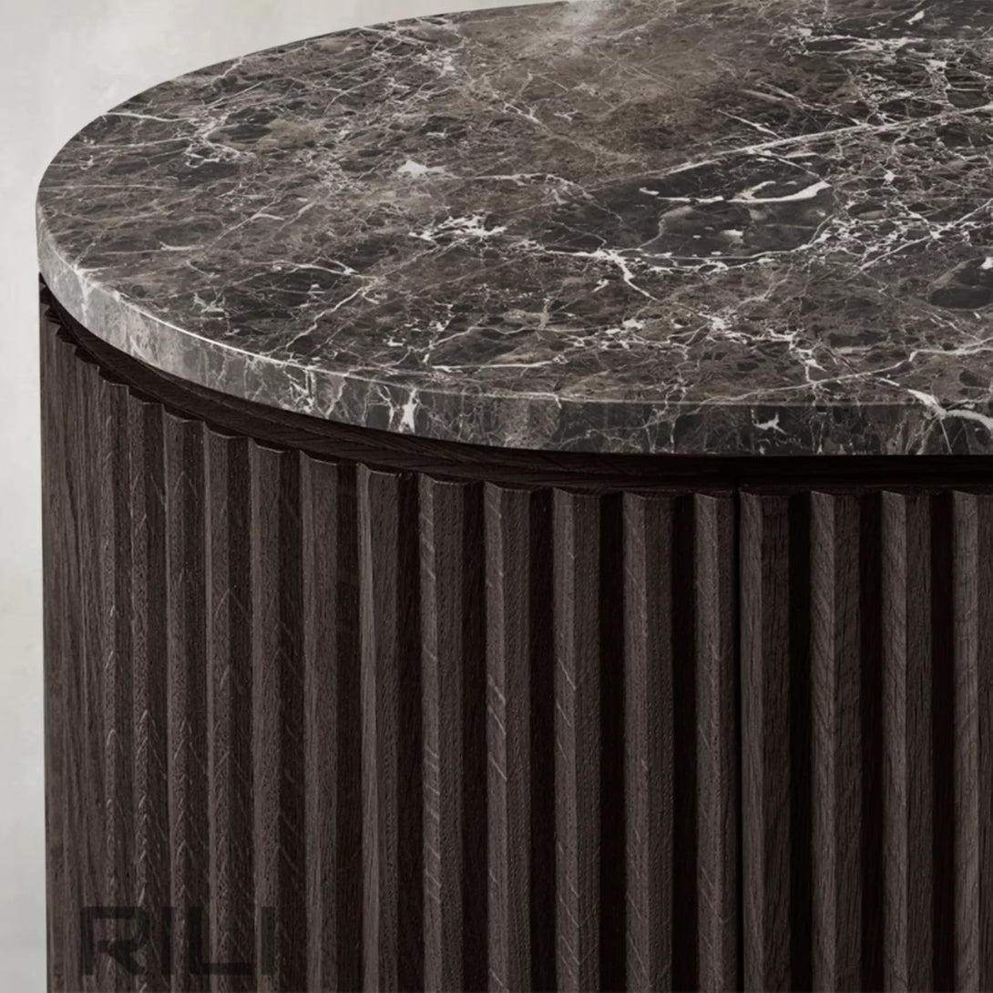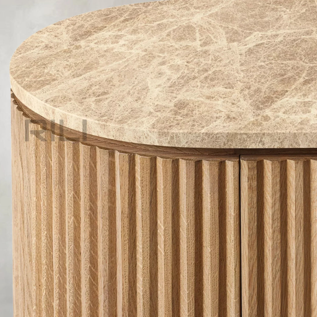 - Vertical oak reeding is finished in an intensive, multistep process that results in a smooth surface with visible grain