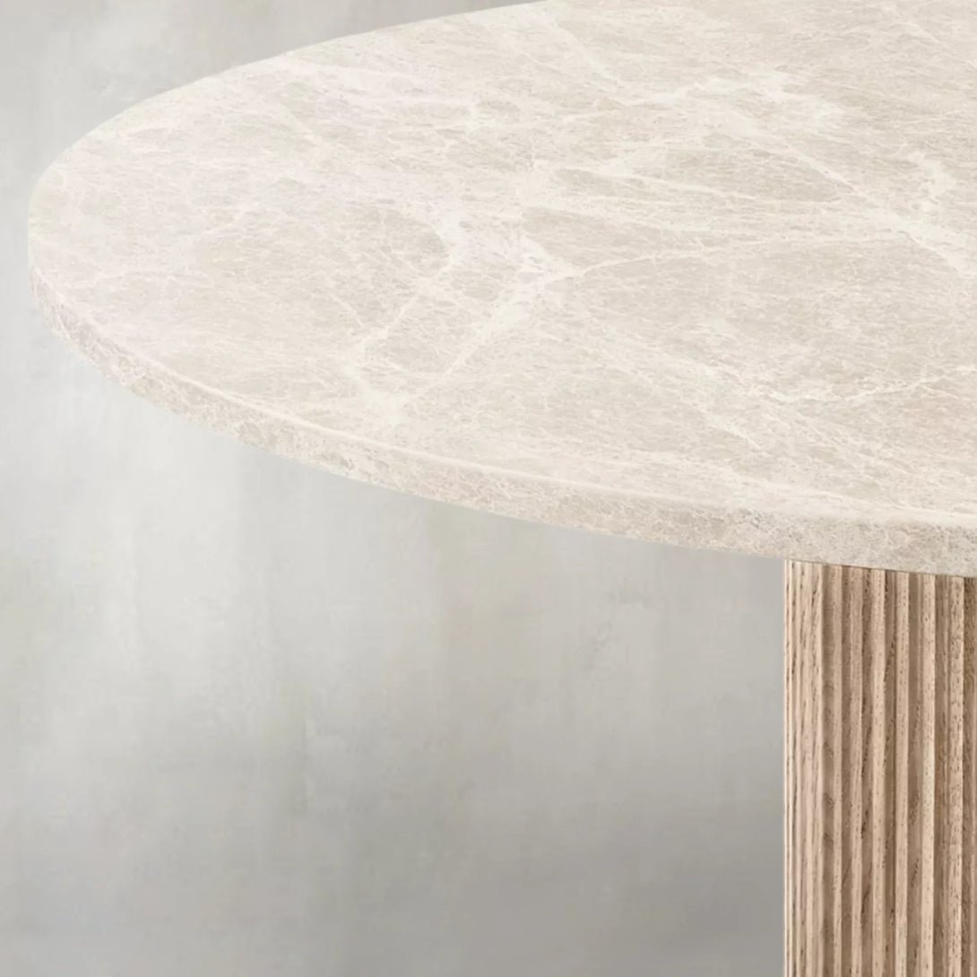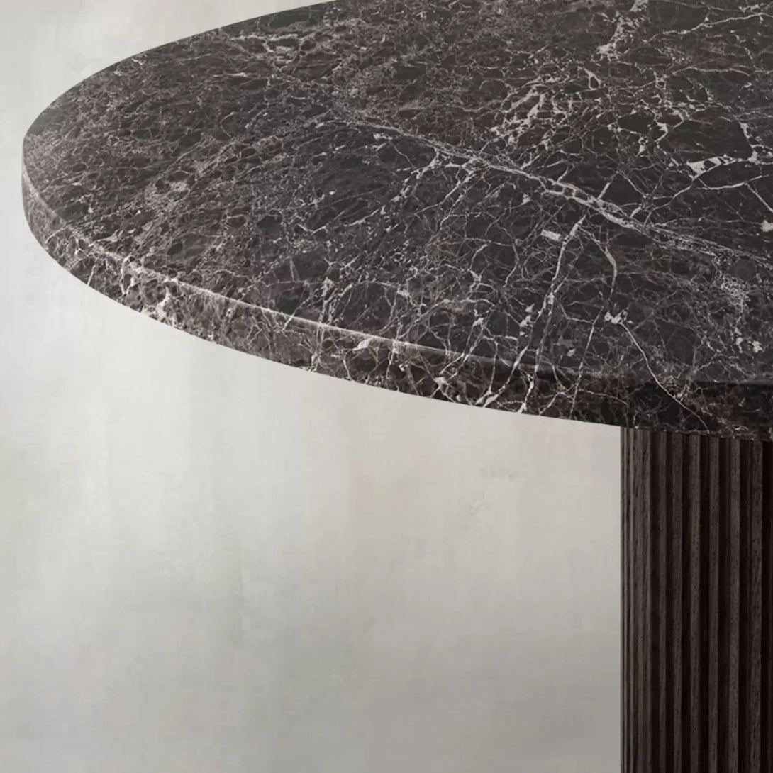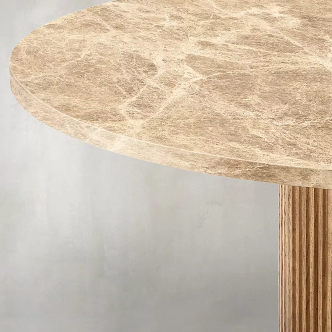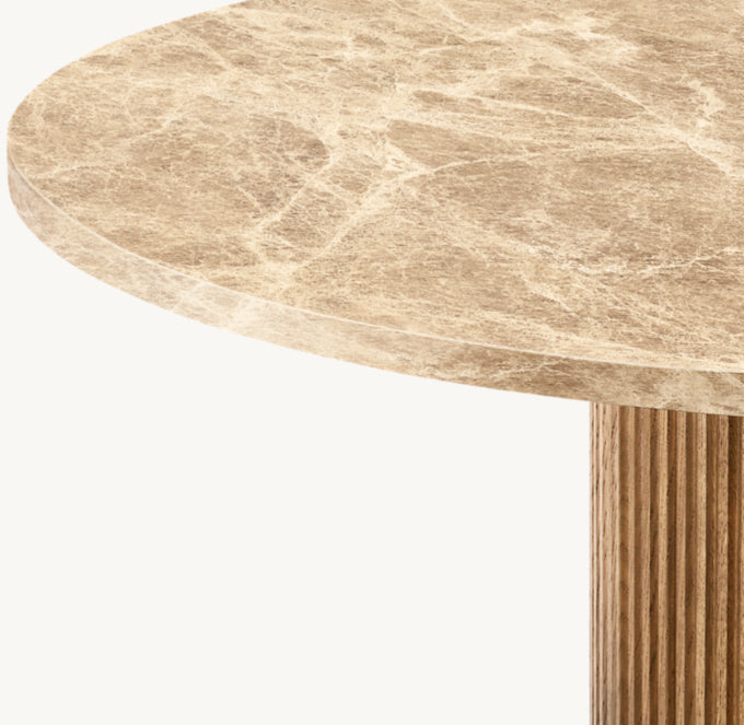 - Top crafted of ¾"-thick Spanish or Turkish marble over an aluminum honeycomb core