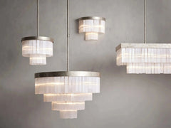 - Adorned with natural selenite crystals, our Cameron Lighting Collection reflects light as they hang elegantly beneath the iron frame. An antiqued silver finish is hand-brushed by our artisans, creating a glamorous aesthetic.