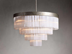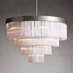- Adorned with natural selenite crystals, our Cameron Lighting Collection reflects light as they hang elegantly beneath the iron frame. An antiqued silver finish is hand-brushed by our artisans, creating a glamorous aesthetic.