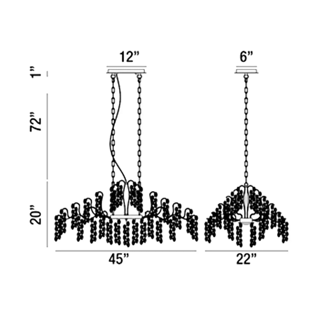 The Campo Collection features an intricate gold metal wire frame adorned with delicately hand-strung glass wafers. This stunning fixture combines artistic design with exquisite craftsmanship, creating a captivating centerpiece that illuminates spaces with elegance and charm.Product Details