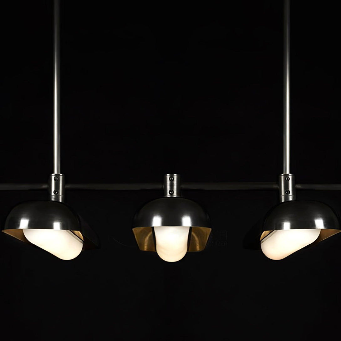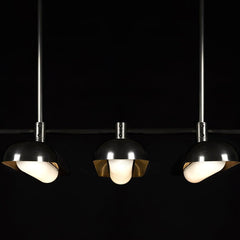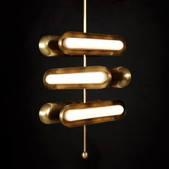 Experience the elegance of the Capsule Chandelier Lamp, crafted with shimmering glass capsules encased within a golden lampshade. Its closed form allows for expansion to build larger installations, making it an ideal tasteful supplement for any space.