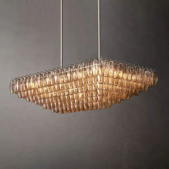 Chara Smoke Glass Tiered Rectangular Chandelier 54"