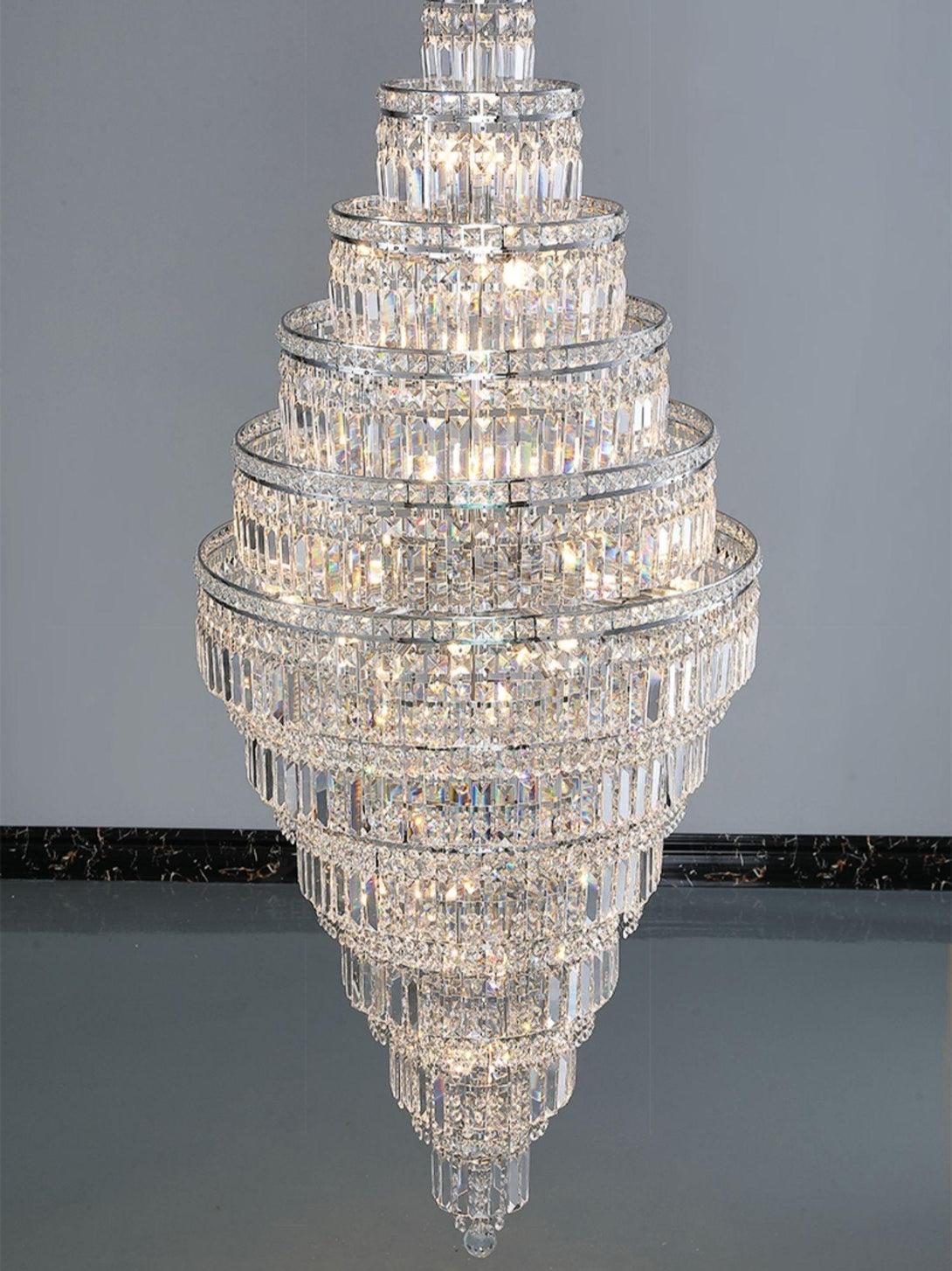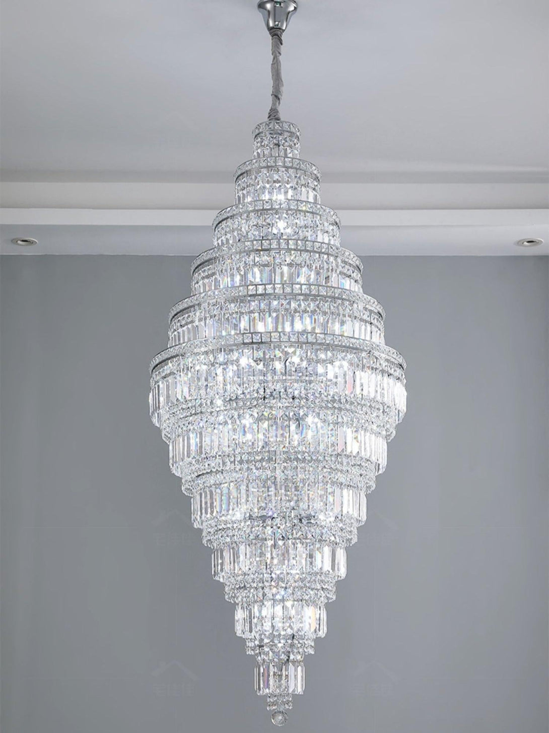 Chrome Extra Large Crystal Chandelier for Foyer Staircase Living Room Entrance Ceiling Light Fixture In Silver