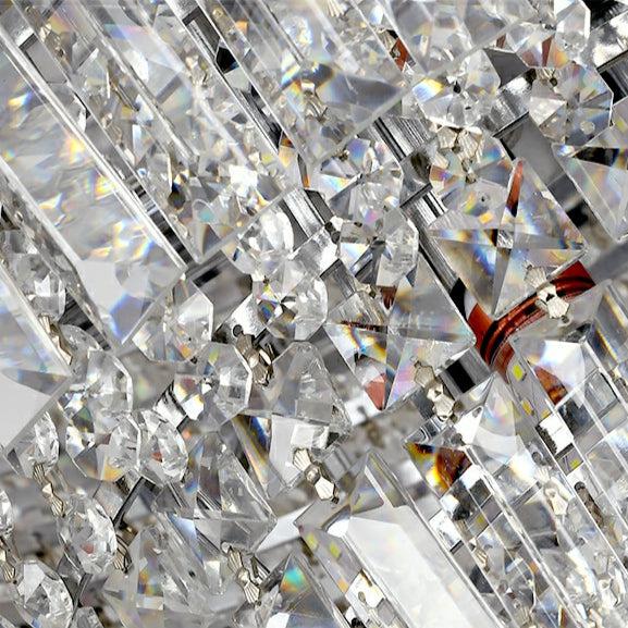 The whole light body is made of high-quality K9 crystal and stainless steel. It is designed into a luxury modern style. It is absolutely stunning no matter light turns on or not.