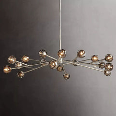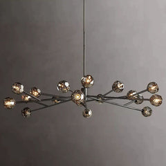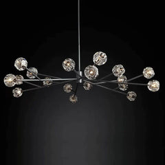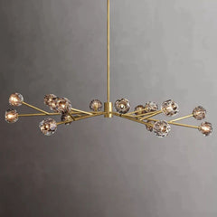 The collection crafted of solid brass and crystal glass, for luxe materials and superior craftsmanship, each finely faceted sphere is ground and polished by hand to reflect and refract the light.