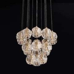 The collection crafted of solid brass and crystal glass, for luxe materials and superior craftsmanship, each finely faceted sphere is ground and polished by hand to reflect and refract the light.