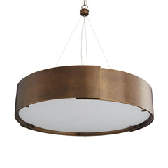 Introduce intrigue into your space with the Dante Chandelier from Arteriors. The suspended pendant and overlapping antique brass bands exude effortless elegance. A frosted acrylic diffuser softens the light of five hidden bulbs. Damp-rated for versatility, its design is perfect for dining rooms, bathrooms, and bedrooms.