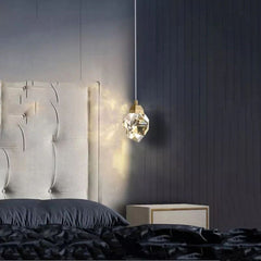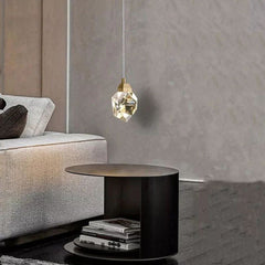 The Pendant is made of crystal. All parts are hand polished and patina’d. The ceiling plate and sockets are also made by hand in brass.