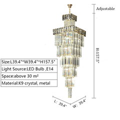 The whole light body is made of high-quality K9 crystal and metal. It is designed into a luxury modern style. It is absolutely stunning no matter light turns on or not.
