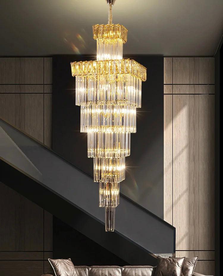 Decorative Large Vertical Crystal Staircase Chandelier Foyer Ceiling Light Fixture Lamp In Gray/ Amber Brim