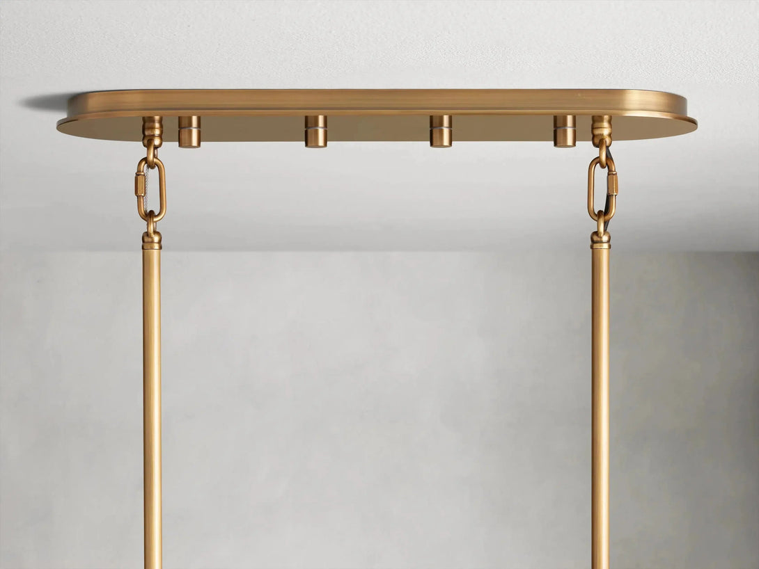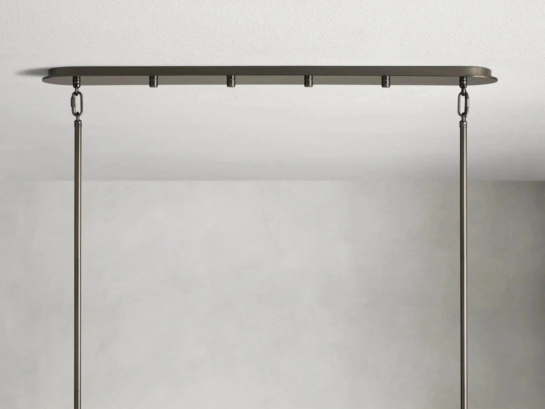 WIDTH 51.5" DEPTH 22" HEIGHT 12" WEIGHT 92.37 LBS NUMBER OF SOCKETS 4 MAXIMUM HANGING DISTANCE 160.6" CANOPY DEPTH 6.69" CANOPY WIDTH 22.24" - 63" Width x 30.5" Depth x 20.5" Height x 30.5" Diameter