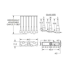 - 7-Light: 44.3″W X 21.7″H