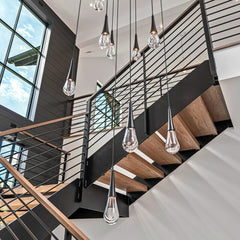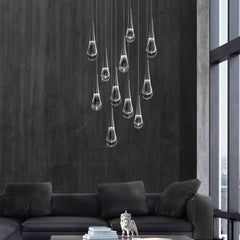 Each clear raindrop pendant is handmade, highlighting the artistic atmosphere. Each raindrop pendant is carefully blown and polished by workers with many years of manual experience. The fittings are made of solid brass with high surface finish and exquisite workmanship. Perfect presentation of this lighting, high-quality technology and high-quality materials. Highlight the artistic atmosphere.