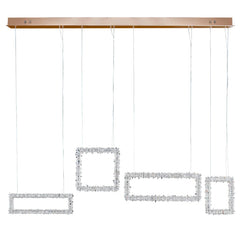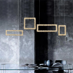 Echo Modern Rock Crystal Chandelier Over Dining Table is decorated with rock crystals at side. Luxury and Unique design. it is inspired by the ice, and this pendant light is decorated with the rock crystals outside, gives a natural look, if you are looking for a modern look chandelier for your dining room, this one will be a good choice.