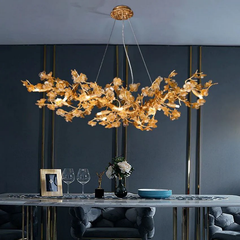 Eclatant Modern Leaf Linear Branch Chandelier is an ancient tree from the literary work "A Song of Ice and Fire", which Eddard Stark called the "Heart Tree". In Winterfell, the bark of the Leaf is as white as bone, and the leaves are deep red, like a thousand bloodstained palms. The trunk is carved with a human face, a deep sunken eye hollow full of dried red sap, grotesque in description and full of caution. |