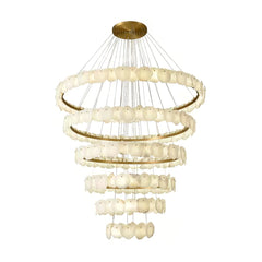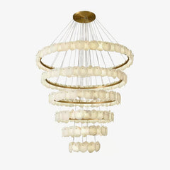 The Ecliptica Spiral Alabaster Chandelier captures the mesmerizing dance of celestial orbits with its tiered concentric rings spiraling downward, each adorned with hand-carved alabaster petals. This sculptural masterpiece emits a soft, lunar glow that cascades like a celestial eclipse unfolding in space. Suspended by fine cables from a satin-brass canopy, it creates an immersive ambiance of cosmic elegance—ideal for grand staircases, luxury foyers, and spaces that celebrate both art and atmosphere.