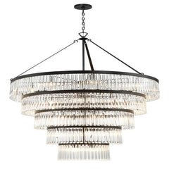 Art deco design is exemplified in the Emony collection. The collection features a row of smooth glass prisms hanging from a steel frame. Both the Black Forged and Modern Gold finishes, add all the sparkle and glamour you need in a fixture. |