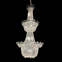 This empire chandelier features a pendant design with crystal and a polished silver finish frame. The whole light has a clean line sense, fanciful beads, dainty droplets, and antique nostalgic ovals woven into chains creating a jewel-like brilliance. Decorated crystal slices like branches that stick out, adding an additional layer of extension and pullulation.