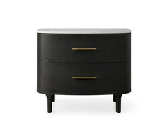 Our nightstand showcases a stunning mixed-material design, inviting elevated style into any space. Hand-finished pine from Finland or white oak wood is luxuriously accented by reeded oak detailing complemented by stone tops. The result is an eclectic-yet-chic accent piece that easily fits into the aesthetic of your home from the living and dining rooms to bedrooms, office spaces, and more.