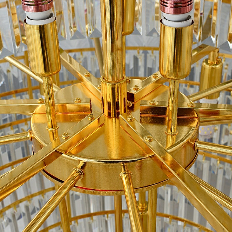 The whole light body is made of high-quality crystal and metal. It is designed into a luxury modern style. It is absolutely stunning no matter light turns on or not.