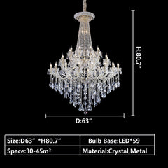 Extra Large French Candle Crystal Branch Chandelier for Foyer and Staircase