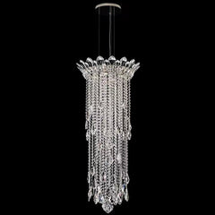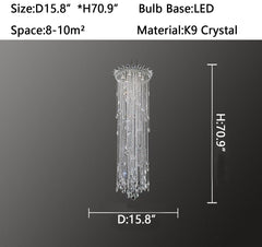 This irregular tassel chandelier is made of clear K9 crystal strands with a crystal raindrop pendant at the end of each string to soften the light. The round floral base represents an impression of luxury and elegance. With the light streaming through the long tassels, you can feel the beauty of the flow and imagine how dazzling and wonderful the scene is. Perfect for staircases, foyers, cottages and living rooms with high ceilings.