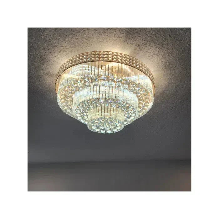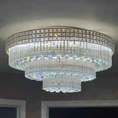 Extra Large Three Layers Round Luxury Flush Mounted Crystal Chandelier for Living Room