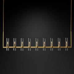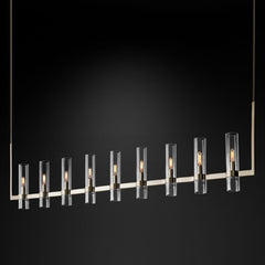 Make a bold statement with the Grandiose Linear Chandelier – an expansive piece that seamlessly blends brass and glass for a captivating lighting centerpiece.