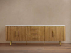 - Levelers on the bottom of each leg ensure sideboard sits evenly on uneven floors.