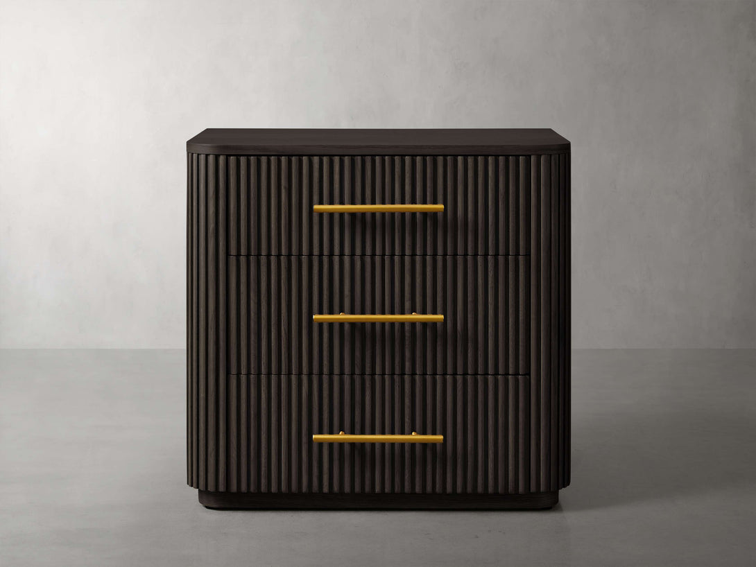 - Finnley pieces with a Honey finish are constructed from white oak wood with oak veneers; Pieces finished in Ebony are constructed from Finnish pine with oak veneers.