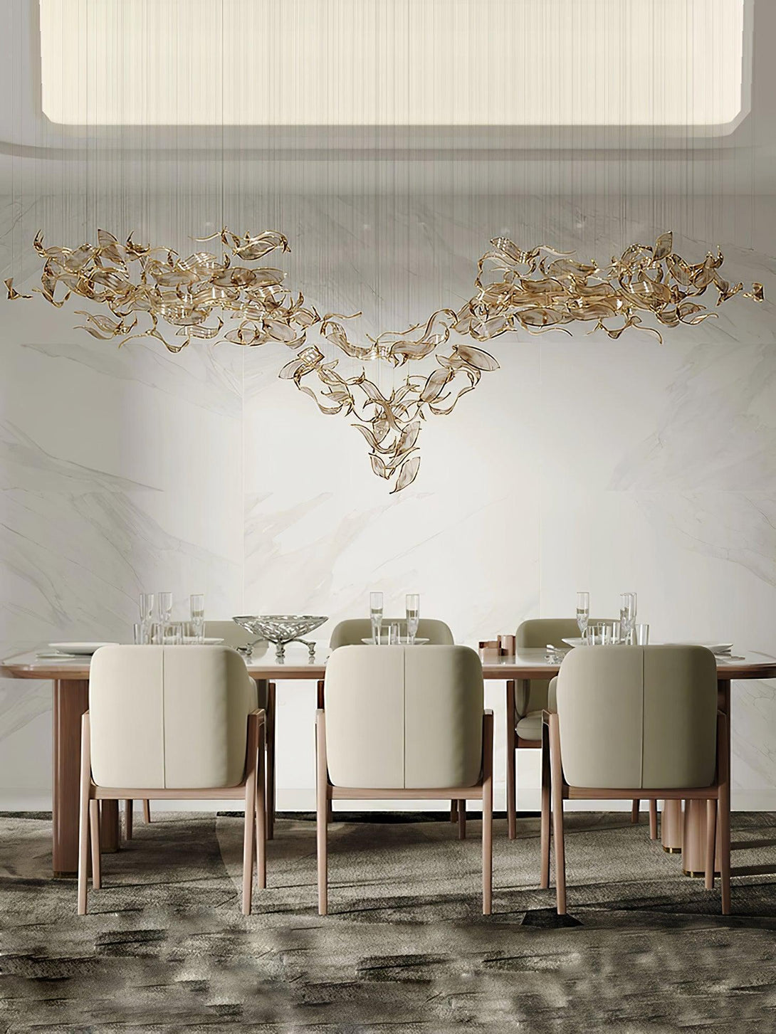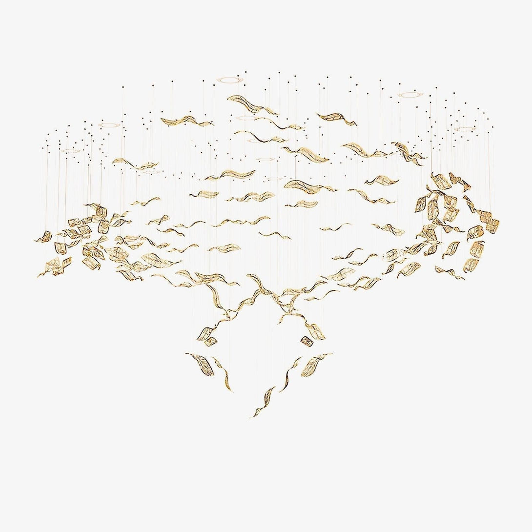 The Wave Floating Leaf Chandelier is expertly crafted for a unique and elegant lighting experience. With a stunning wave design and floating leaves, this chandelier adds a touch of nature to any space. Made with high-quality materials and attention to detail, it is a beautiful addition to any home or business.