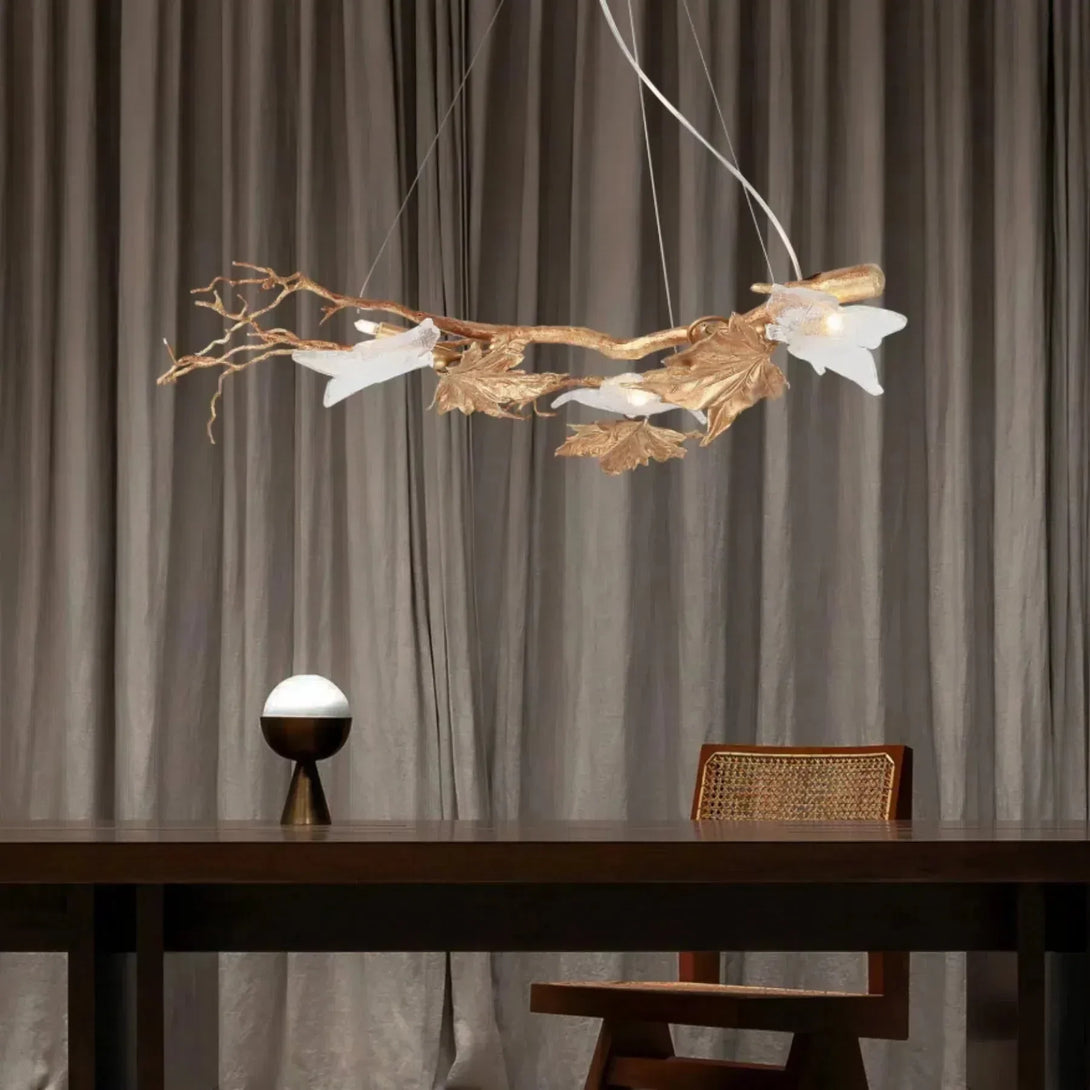 The Folio Branch Brass Chandelier offers a unique and majestic take on classic and contemporary interiors. Inspired by nature, this mottled brass chandelier is designed to resemble a maple leaf, creating a distinct and breathtakingly symmetrical vertical composition of reflections and contrasts. Add a sense of enchantment to your dining area. |