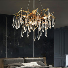 The whole light body is made of high-quality K9 crystal and copper. It is designed in a luxury modern branch style. It is absolutely stunning no matter light turns on or not.