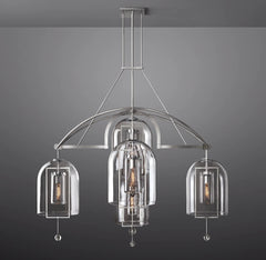 Ancient scales and other measuring instruments inspire this series in which blown glass clocks and spheres are suspended from metal frames in a state of perfect balance. Blurring the line between illumination and sculpture, each piece is a radiant focal point and a powerful symbol of balance.