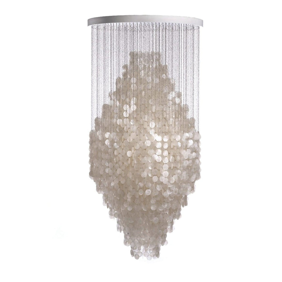 Material | Seashell discs, stainless steel rings, ceiling plate made of MDF (white lacquered), and transparent plastic cord. |