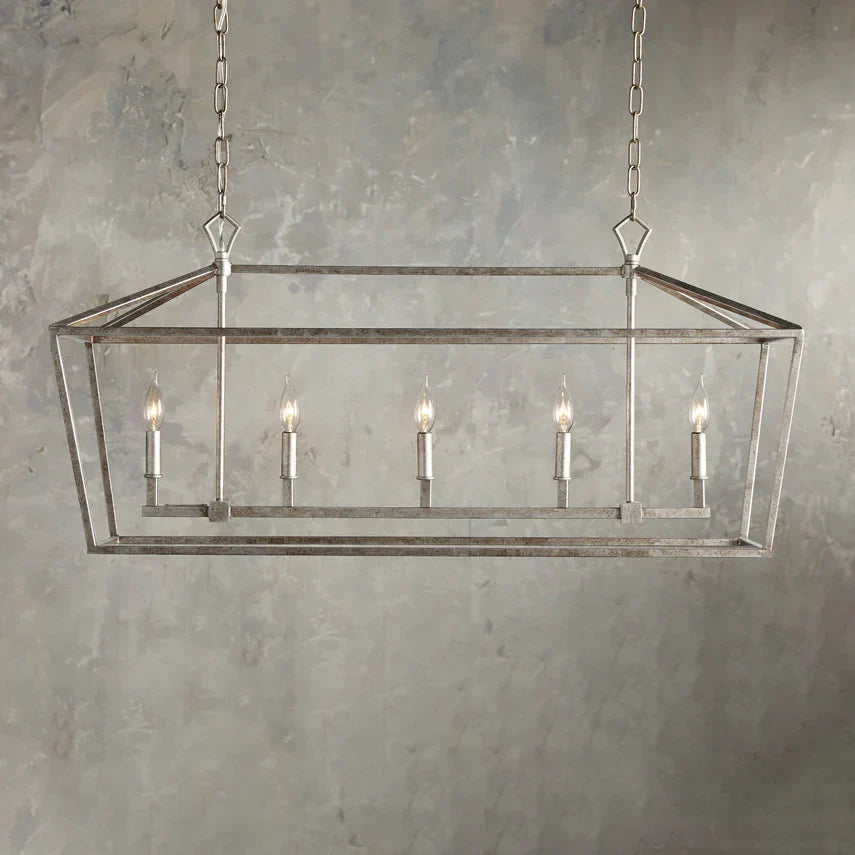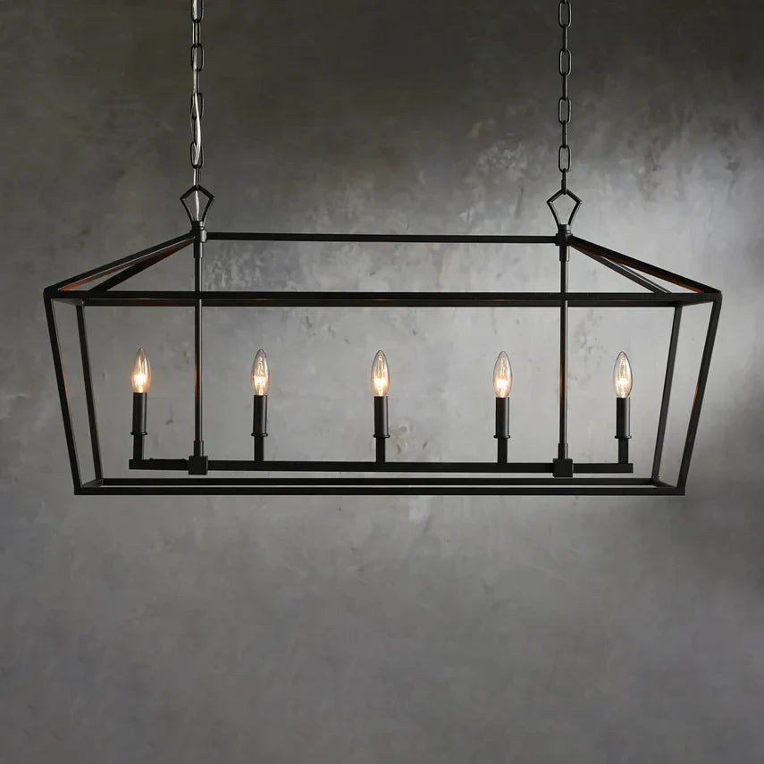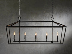 - Let your vision take shape with our chic Hemisphere Rectangular Chandelier. Hang in any entryway, hall, or large dining space. An open geometric design crafted from iron is hand-finished for a look that’s rustic yet gorgeously modern.