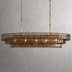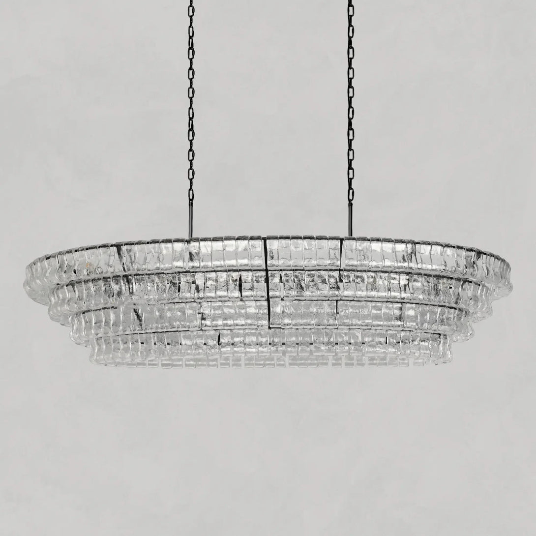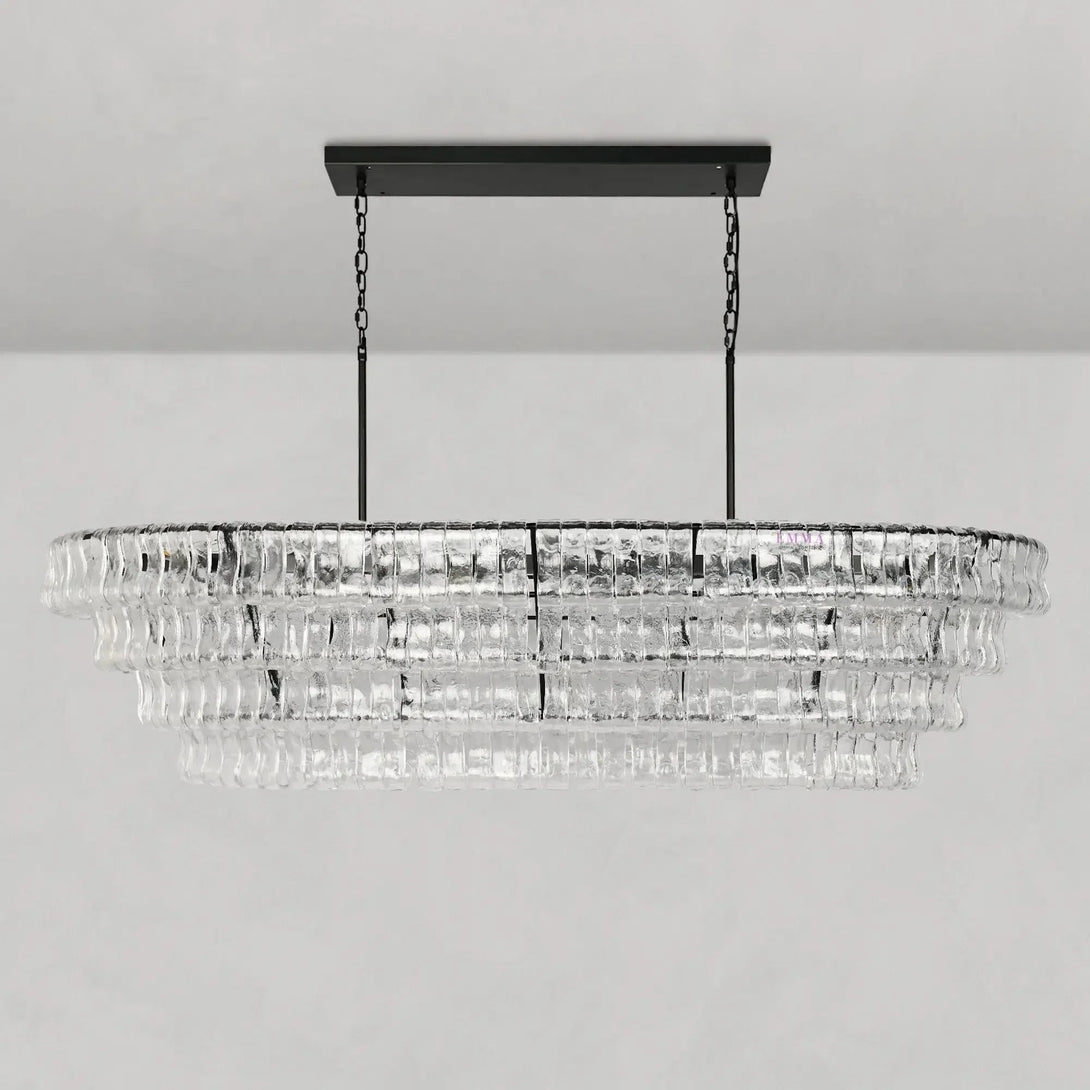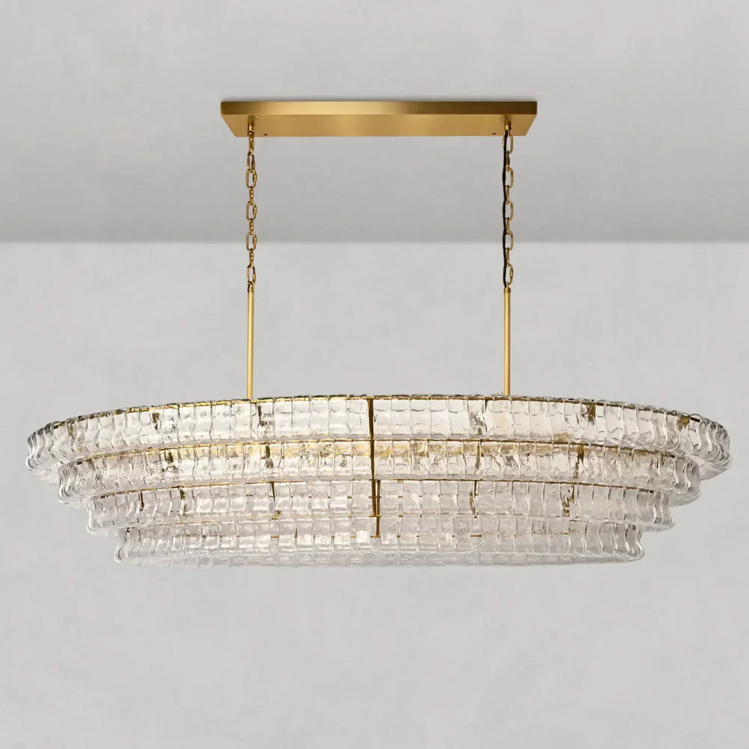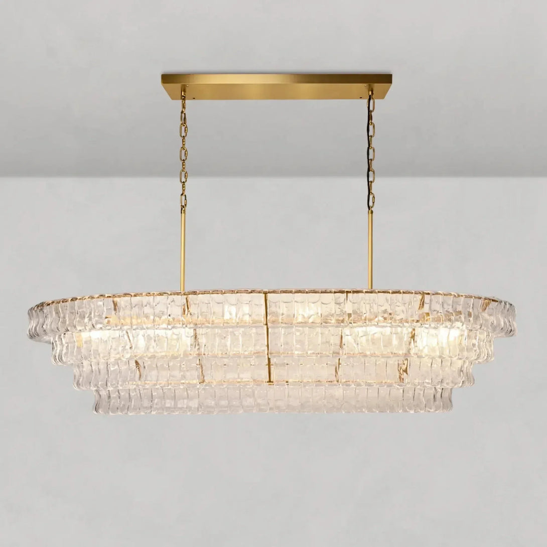 - Inspired by famously adorned Italian glass, our Ghiaccio Chandelier artfully diffuses light through pieces of curved, textured glass. Complemented by a plated-brass finish, Ghiaccio elegantly illuminates any room.