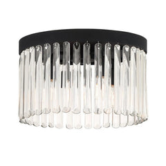 | Art deco design is exemplified in the Guyton collection. The collection features a row of smooth glass prisms hanging from a steel frame. Both the Black Forged and Modern Gold finishes, add all the sparkle and glamour you need in a fixture. |